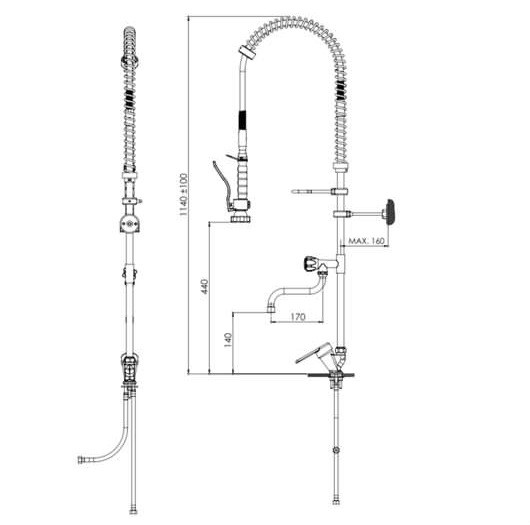 اگر به دنبال شیر بالارو صنعتی با کیفیت بالا و طراحی کاربردی برای آشپزخانه هستید،مدل 105.021.024.1000 با دوش پیششستشو و خروجی از روی سینک، گزینهای بینظیر است. این شیر دارای دو ورودی آب سرد و گرم، دستههای مجزا برای کنترل دما، و شلنگ فنری انعطافپذیر با زاویه ۹۰ درجه برای راحتی در استفاده است.